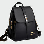 Elegantní batoh v černé barvě s rafinovaným designem, který kombinuje styl a praktičnost. Víko s kovovým detailem ve zlaté barvě dodává luxusní charakter, zatímco více externích kapes na zip poskytuje snadnou organizaci a pohodlí. Nastavitelné popruhy zajišťují pohodlné nošení, což z něj činí ideální volbu pro každodenní použití i pro elegantnější příležitosti.