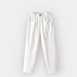 Tyto kalhoty kombinují chladivou lněnou tkaninu s uvolněnou elegancí, nabízející pohodlí a styl v každém okamžiku dne. Ideální pro nenáročné vzhledy se sofistikovaným charakterem.