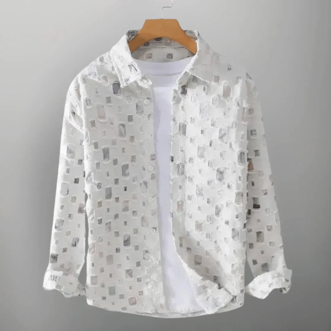 Oživte svůj vzhled s košilí s límečkem a mozaikovým vzorem. Ideální pro všechny, kteří chtějí udělat dojem, tato košile kombinuje robustní eleganci s rafinovanými detaily. Inspirována městským stylem, je určena modernímu muži, který si cení individuality a stylu.