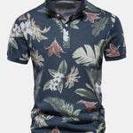 Pánské polo tričko zaujme tropickým listovým a květinovým vzorem na tmavě modrém pozadí. Vyrobeno z měkké, prodyšné bavlny, poskytuje celodenní pohodlí a uvolněný, stylový střih. Ideální pro neformální výlety nebo poloformální příležitosti.