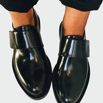 Pozvedněte svůj styl s těmito elegantními černými koženými botami. Jejich minimalistický design s širokým páskem vytváří rafinovaný a moderní vzhled, zatímco lesklý povrch dodává luxusní pocit. Ideální pro každou příležitost, od každodenních outfitů po formálnější výlety.