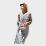 Sofia – Maxi Šaty s Liniovými Vzory a Vzdušným Střihem