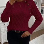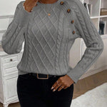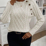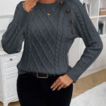 Clara – Svetr s knoflíkovými detaily a pleteným vzorem