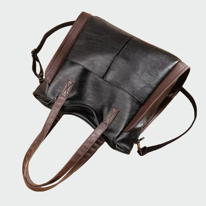 Elegantní taška přes rameno v černé barvě s hnědými detaily, které dodávají nadčasový charakter a jedinečný kontrast. Její prostorný design poskytuje pohodlí a praktičnost pro každodenní použití, zatímco odnímatelný dlouhý popruh umožňuje nošení i křížem. Doplněk, který spojuje styl a funkčnost, ideální do kanceláře i pro elegantní casual vzhledy.